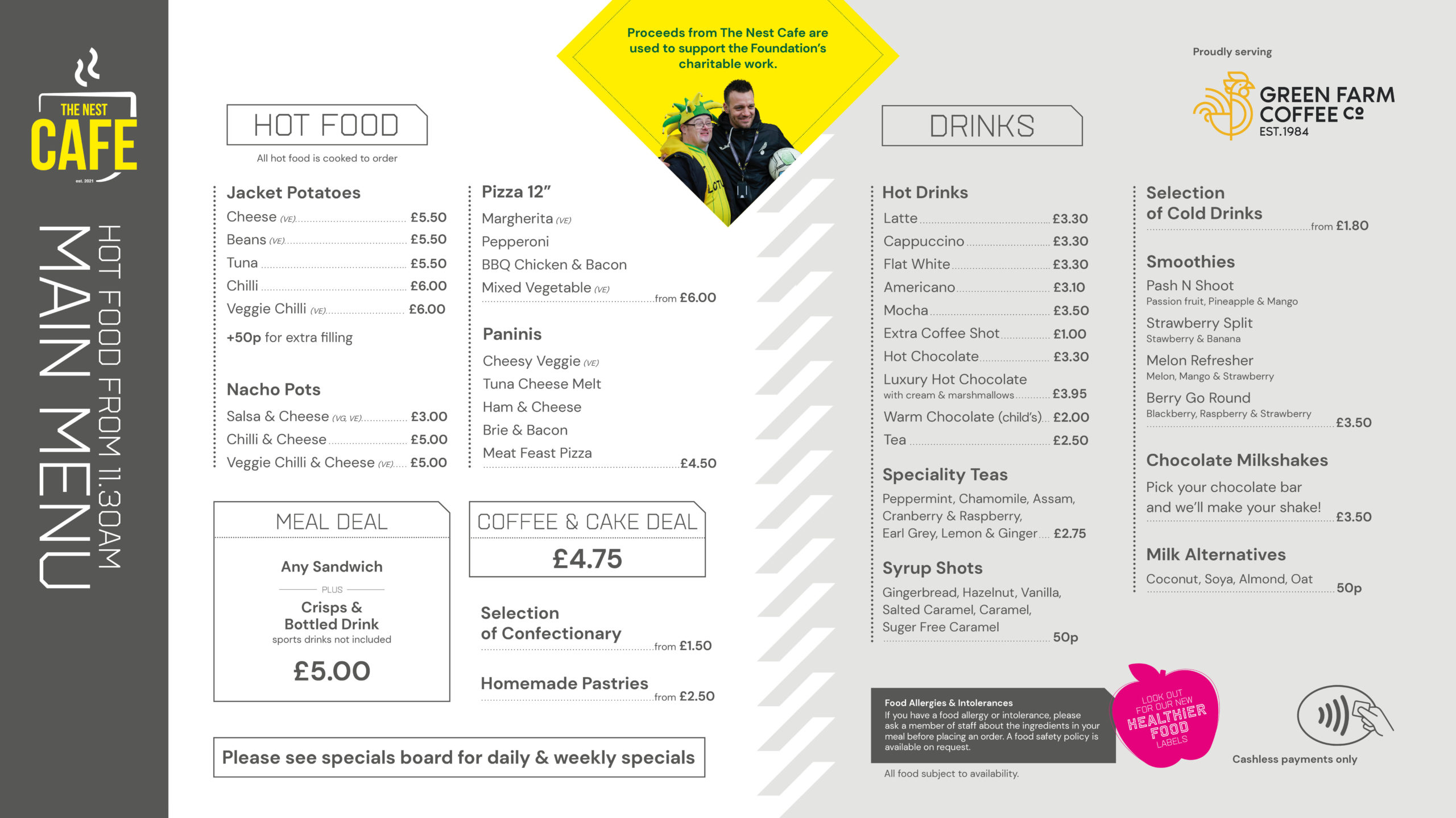 • The Nest cafe is cashless (contactless/card payments only)